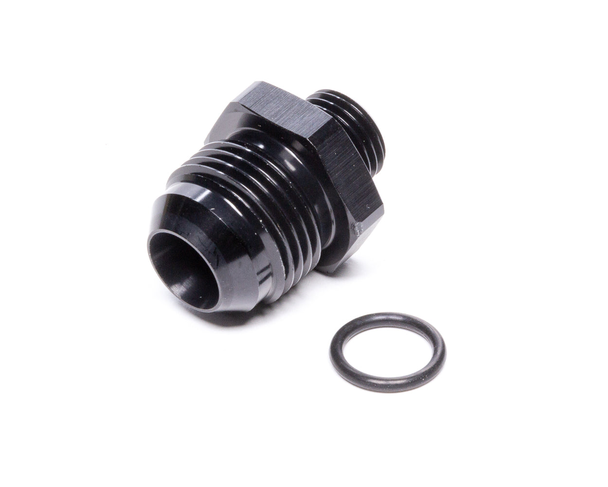 -10AN Flare to Straigh t Cut Thread (9/16-18) Fitting - Adapter - Straight - 10 AN Male Flare to 6 AN O-Ring Male - Aluminum - Black Anodized - Each