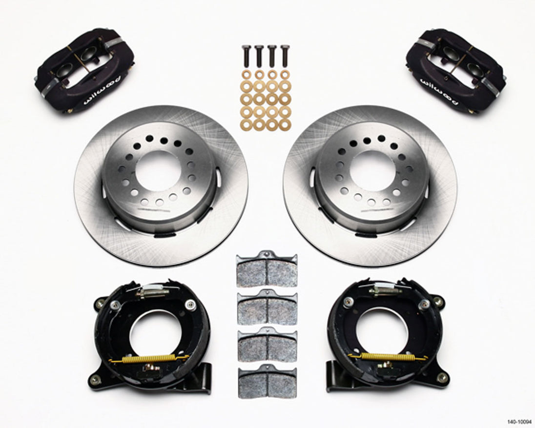Brake System - Dynalite - Rear - 4 Piston Caliper - 12.875 in Plain Iron Rotor - Offset Hat - Aluminum - Black Powder Coat - C10 - GM Fullsize Truck - Kit