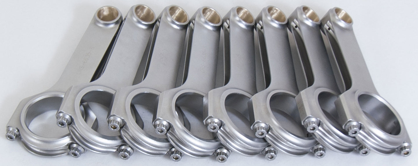 BBC 4340 Forged H-Beam Rods 6.635in Connecting Rod - H Beam - 6.635 in Long - Bushed - 7/16 in Cap Screws - Forged Steel - Big Block Chevy - Set of 8
