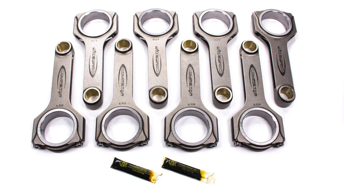 Connecting Rod - Compstar - H Beam - 6.385 in Long - Bushed - 7/16 in Cap Screws - ARPL19 - Forged Steel - Big Block Chevy - Set of 8