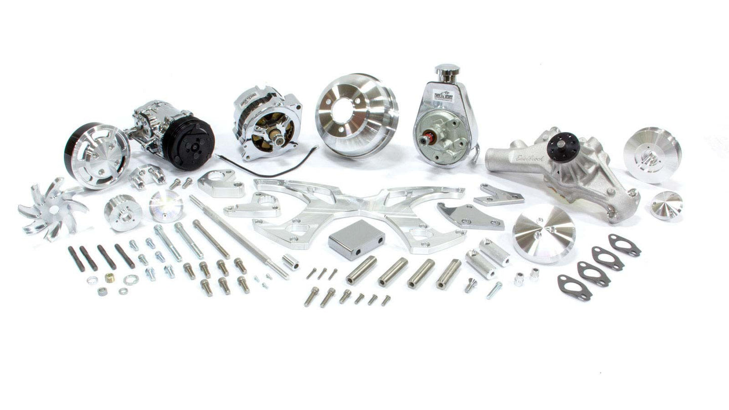 BBC Style Track Pulley System SWP Pulley Kit - Track Style - 6-Rib Serpentine - Aluminum - Clear Powder Coat - Short Water Pump - Big Block Chevy - Kit